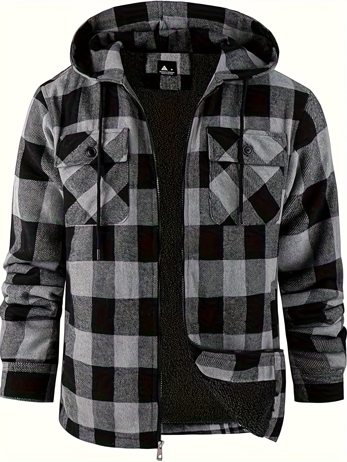 A durable cold-weather jacket and coat set designed with a plaid hooded exterior and warm polyester lining. Built for outdoor winter wear with windproof protection, zippered pockets, and a comfortable regular fit.
