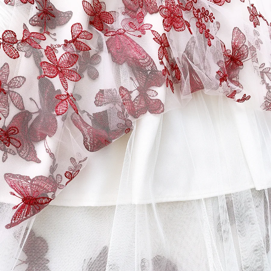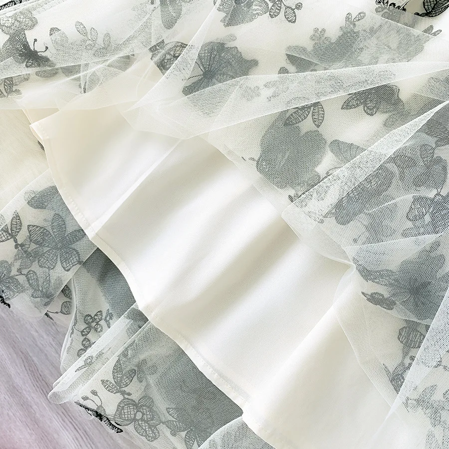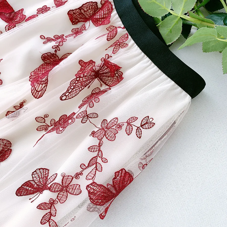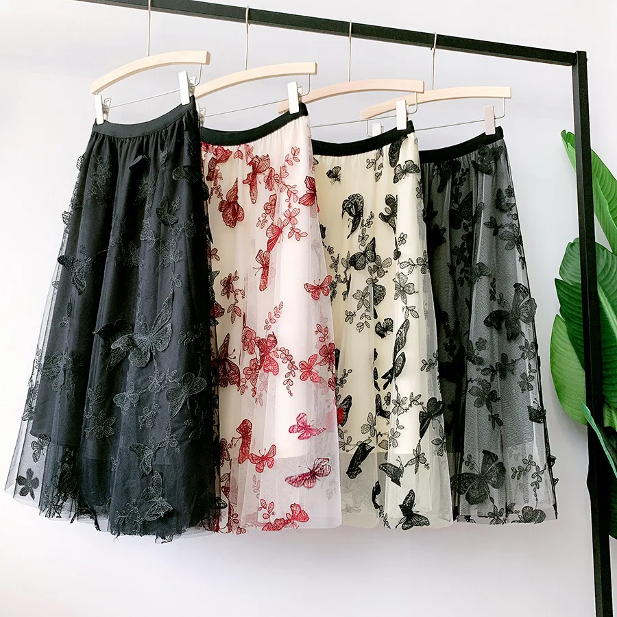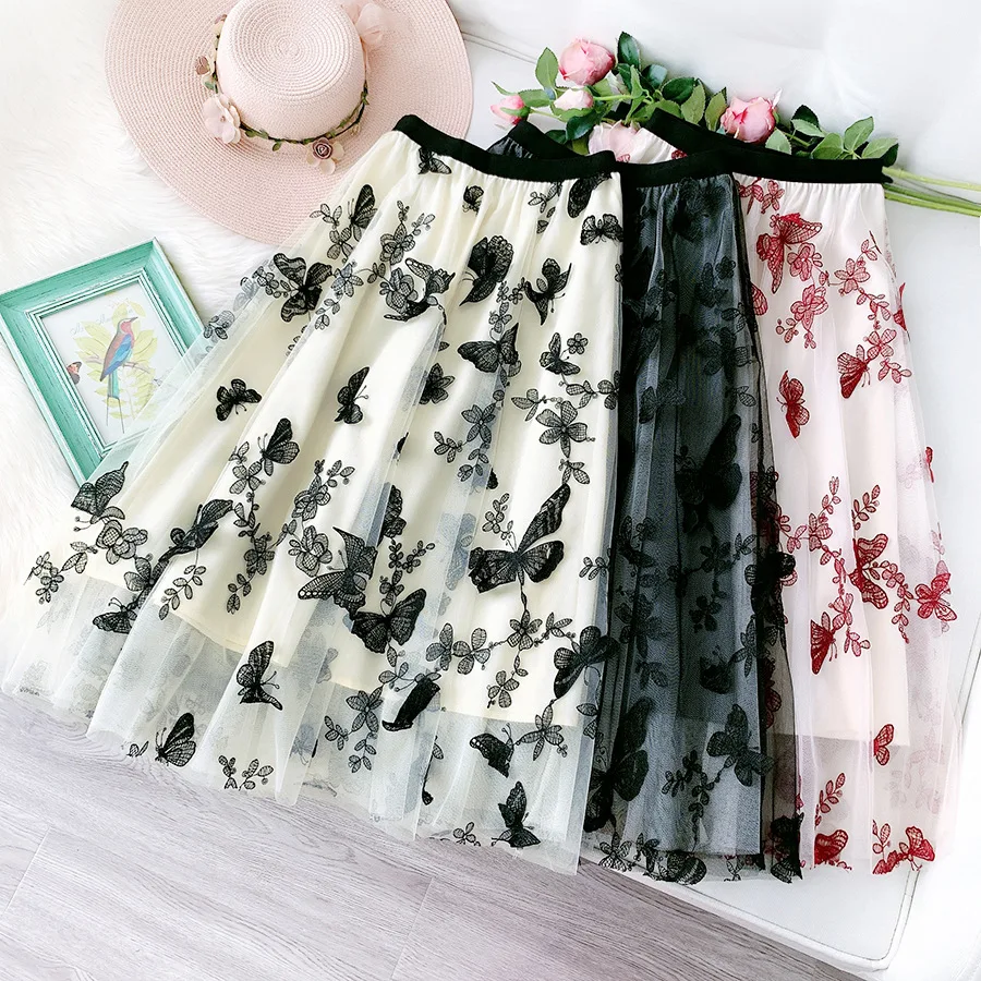 Butterfly Embroidered Women Skirts Long Mesh A-Line Tutu Skirt 2023 New Heavy Work Fairy Tulle Skirts for Women Faldas Saias
