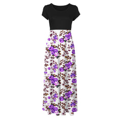 Women Short Sleeve Loose Floral Printed Casual Long Maxi Dresses with Pockets