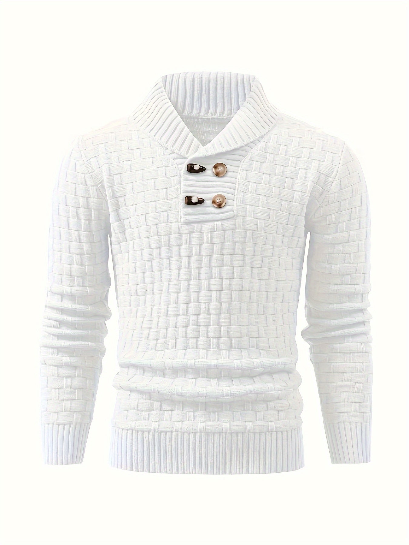 Stretch knit pullover designed for cool-season casual wear. Regular fit with a textured geometric surface and flexible feel.