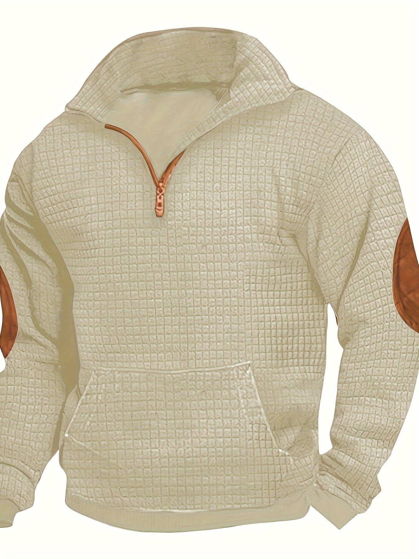 Long sleeve knit top designed for relaxed seasonal wear. Regular fit with slight stretch and a clean plaid surface.