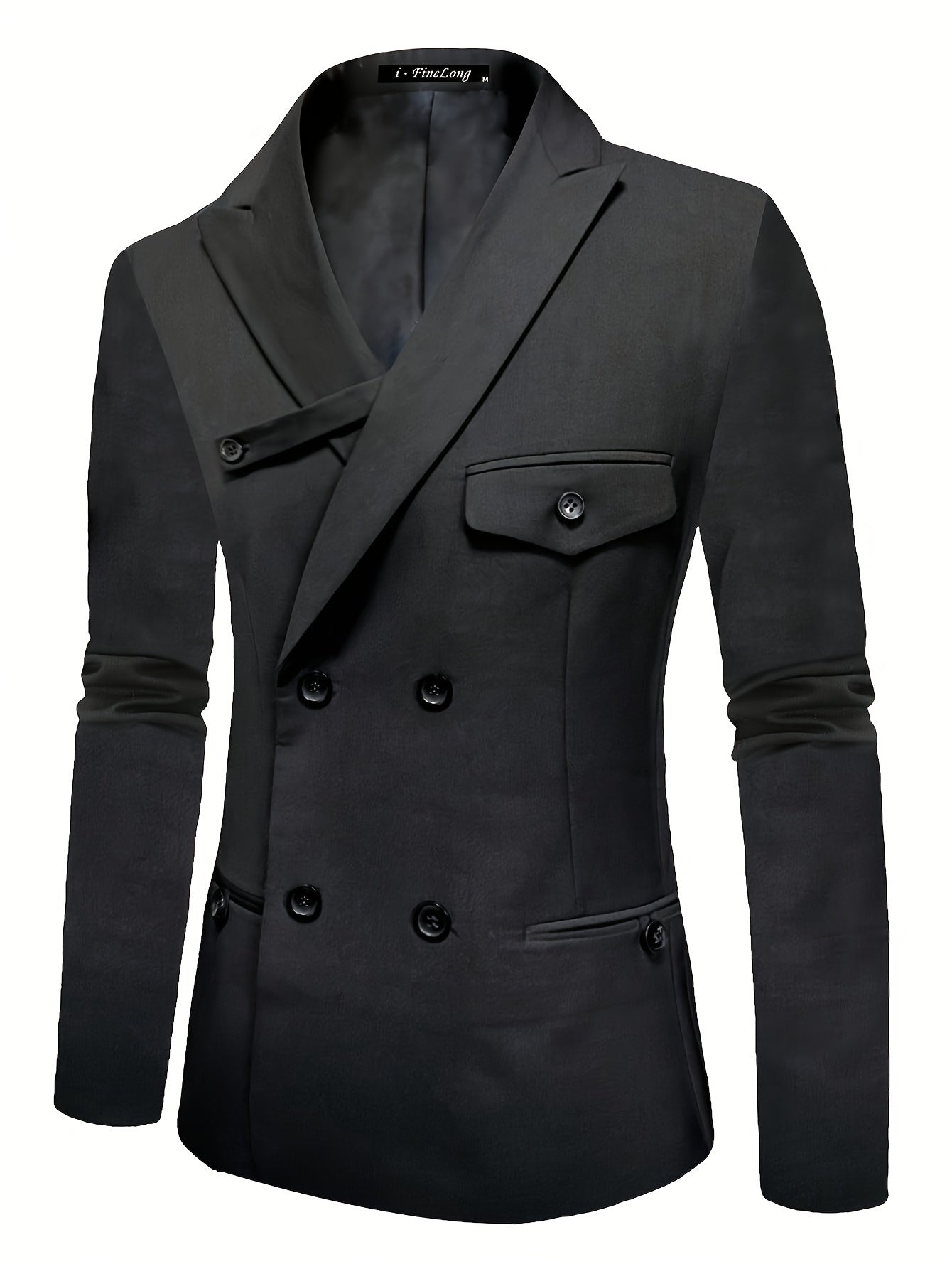 Structured woven blazer designed for refined business and formal styling. Clean tailored shape with a polished double front look.