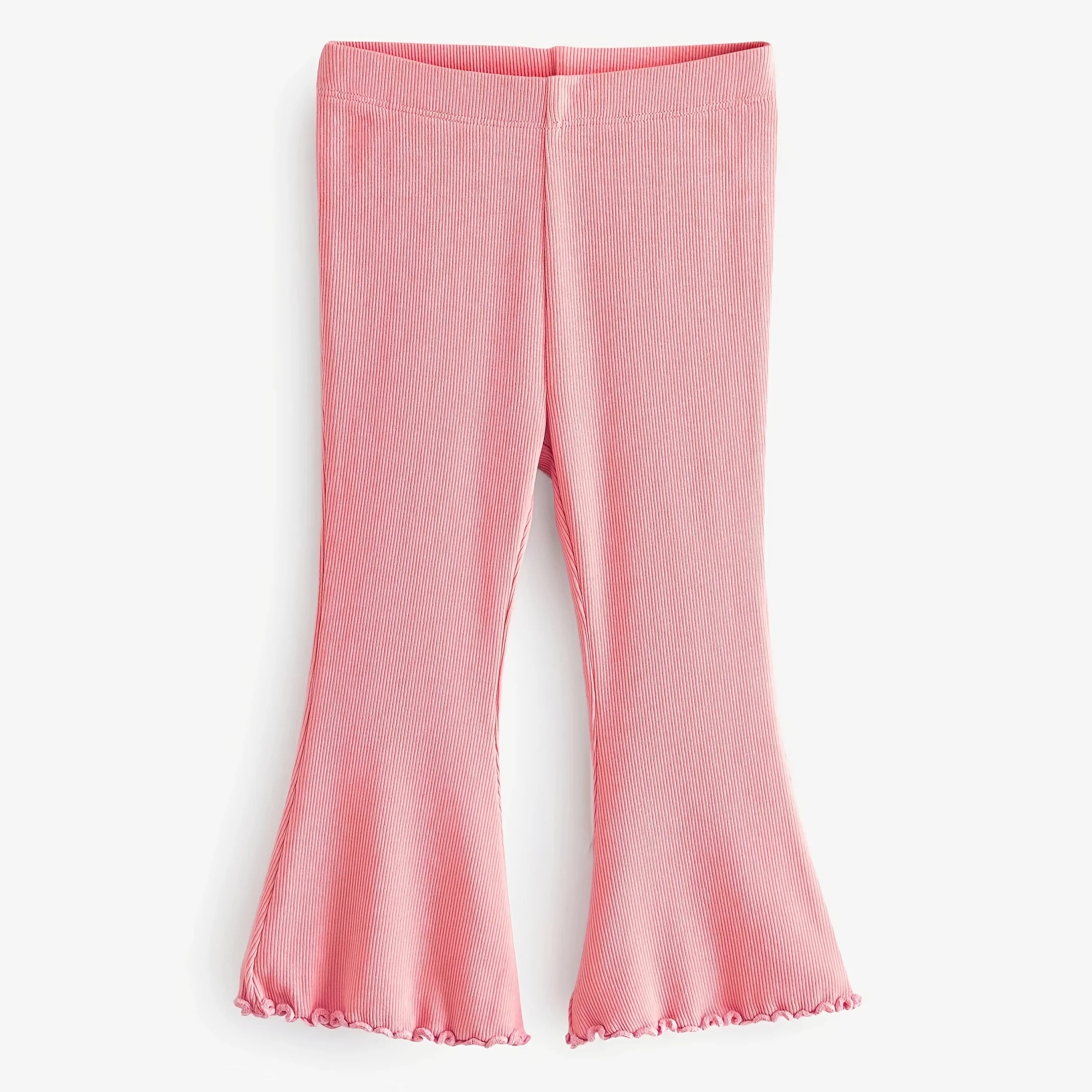Fashionable flared pants designed with a soft knit structure.