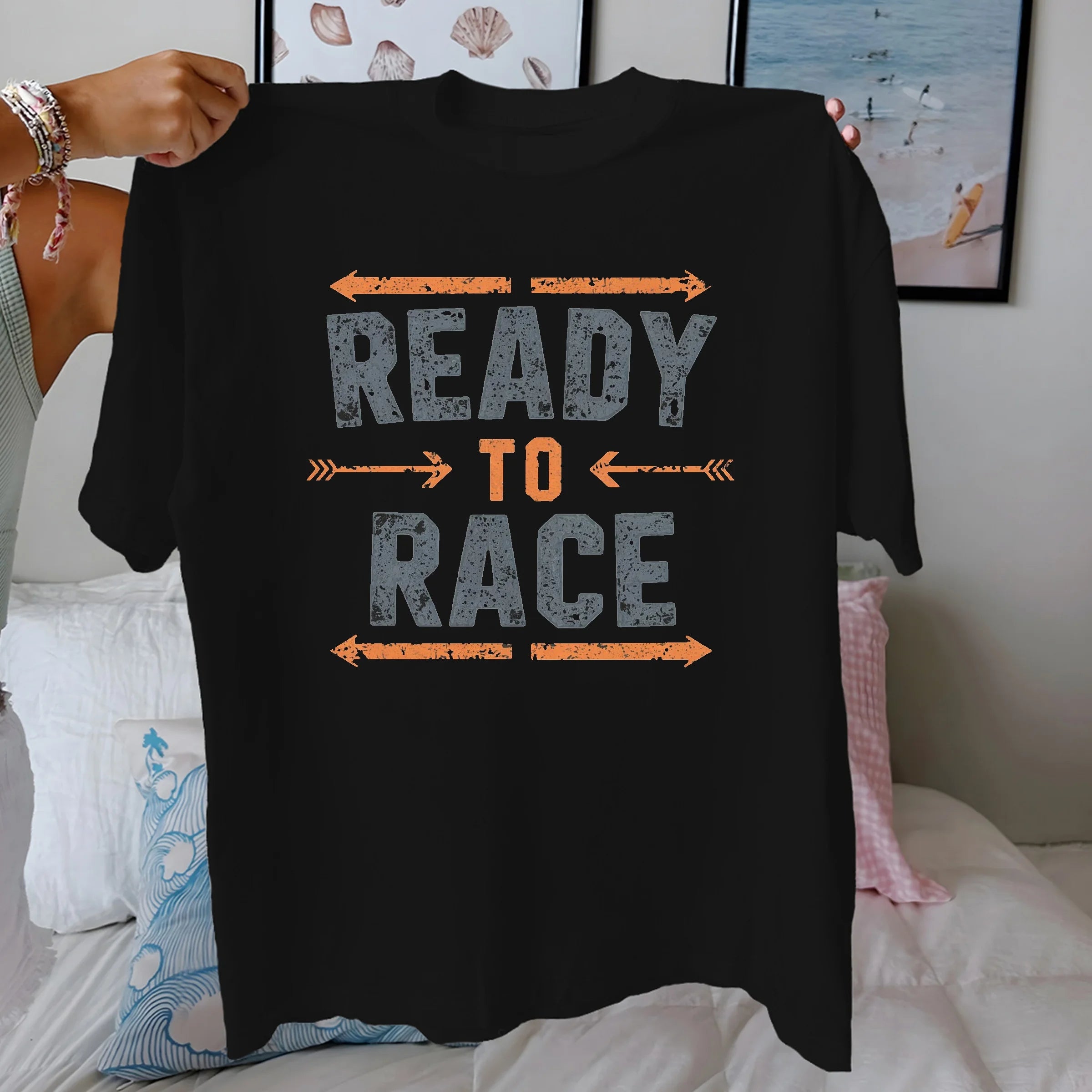 • Distressed “READY TO RACE” printed design